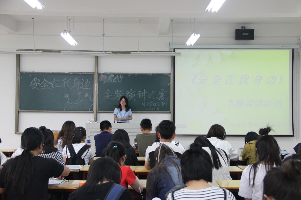 根据学校2017年“安全生产月”和“安全生产陇原行”活动要求,6月18日晚,外语学院在修远楼103教室举行“安全在我身边”主题演讲比赛,大一至大三各班选派一人,共9人进行角逐。比赛由我院学生干部杨洋、成荫、张洋财担任评委,学院大一、大二同学观看了比赛。